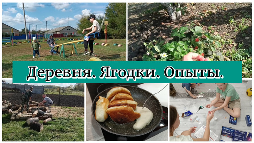 Деревенский влог🏡Последние ягоды🍓Печем пирожки с кисляткой/ Детские опыты👨🔬