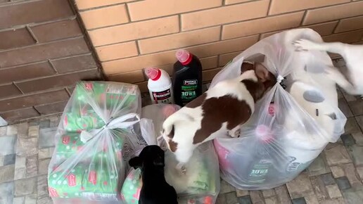 Хвостики помогают разбирать покупки, сегодня им не очень интересно.