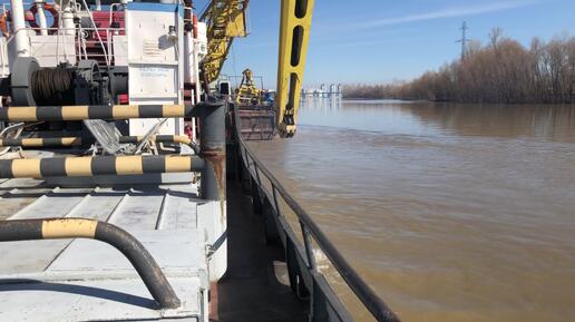 РТ-452 и плавкран КПЛ-693 выходят из Затона на р.Обь - Навигация 2024 (17 апреля)