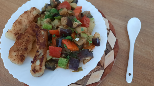Рыбные палочки из трески с овощами. Полезное блюдо за 15 минут.