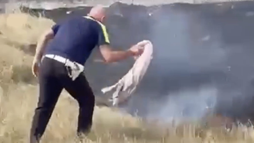 Воронежские ГАИшники бросились тушить распространявшийся по полю пожар