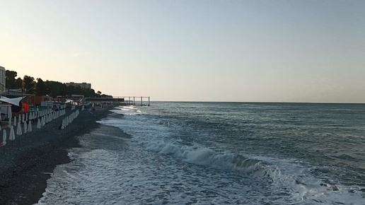 Море сегодня, Адлер, 16.09.2024. Начинается шторм. Мощные и красивые волны накатывают на пляж.