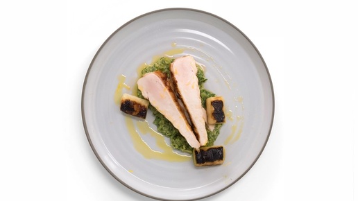 Куриные грудки гриль с луком-пореем конфи и песто из сезонных трав