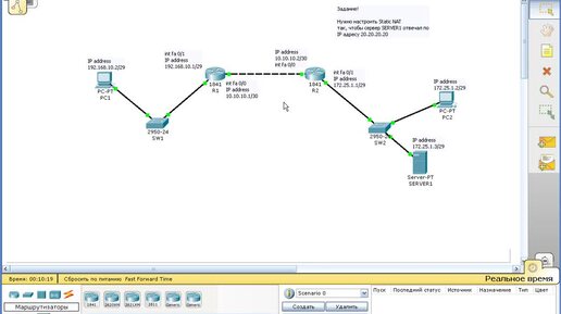 Курс Cisco, Routing and Switching. Шаг 19 Настройка Static NAT на маршрутизаторах