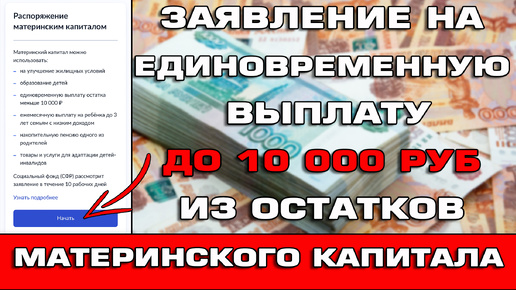 Заявление через Госуслуги на Единовременную выплату до 10000 руб из остатков материнского капитала