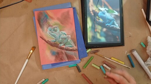 Рисуем хамелеона сухой пастелью. Урок 2 - работаем с цветом.