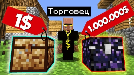 ЗЕМЛЯНОЙ СУНДУК ЗА 1$ ПРОТИВ ОБСИДИАНОВЫЙ СУНДУК ЗА 1000000$ В МАЙНКРАФТ MINECRAFT ЖИТЕЛЬ ПРОДАВЕЦ
