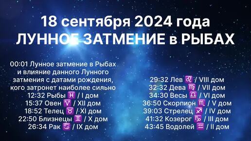 ЛУННОЕ ЗАТМЕНИЕ 18 сентября 2024 года в Рыбах💫 АСТРОПРОГНОЗ для всех Знаков Зодиака.
