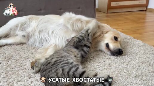 Щенок ретривера и добрые кошки видео (161) 😍 Растет золотистый пёс ❣️😾🐶