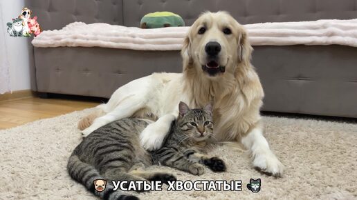 Щенок ретривера и добрые кошки видео (147) 😍 Растет золотистый пёс ❣️😾🐶