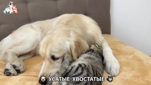 Щенок ретривера и добрые кошки видео (129) 😍 Растет золотистый пёс ❣️😾🐶