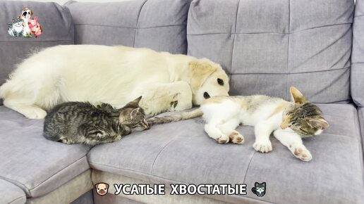 Щенок ретривера и добрые кошки видео (76) 😍 Растет золотистый пёс ❣️😾🐶