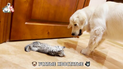 Щенок ретривера и добрые кошки видео (64) 😍 Растет золотистый пёс ❣️😾🐶