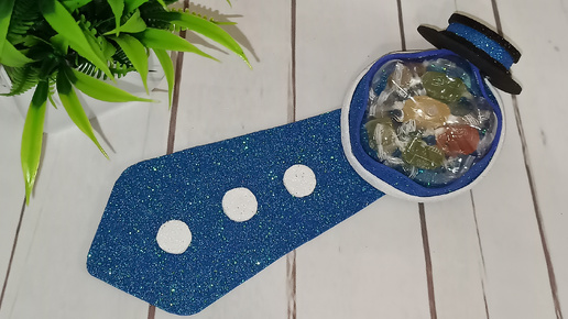Мастер класс. Подарочек для маленьких джентльменов. Галстук с конфетками из пластиковой бутылки и фоамирана.