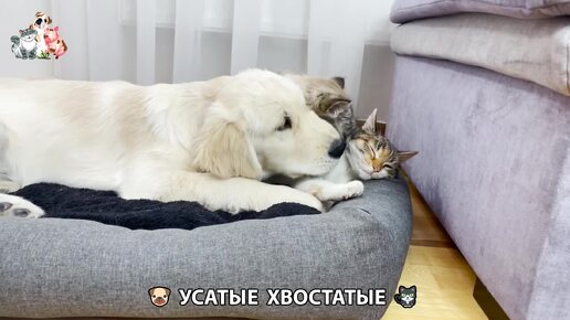 Щенок ретривера и добрые кошки видео (16) 😍 Растет золотистый пёс ❣️😾🐶