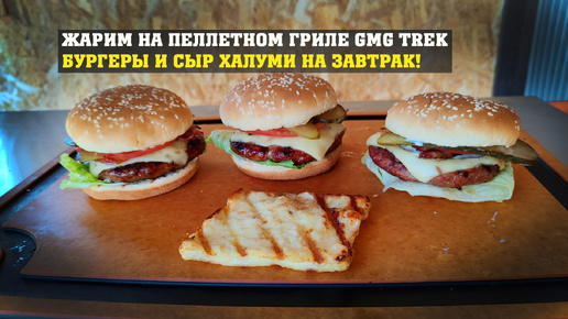 Жарим на пеллетном гриле GMG Trek! Бургеры из говядины с беконом и сыр Халуми на завтрак!
