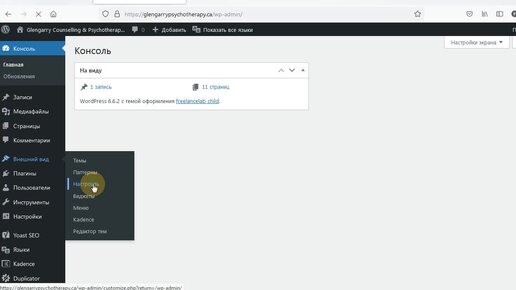 Далее: Индивидуальная инструкция по работе с сайтом на WordPress glengarrypsychotherapy.ca 2 страницы и записи