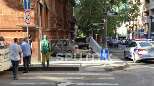 Ночная гонка в центре Еревана: Volkswagen пробил стену после жесткого столкновения
