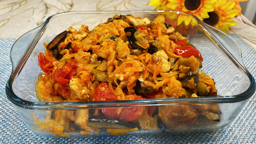 Теплый салат из баклажанов и курицы. Объедение, невероятно вкусный!
