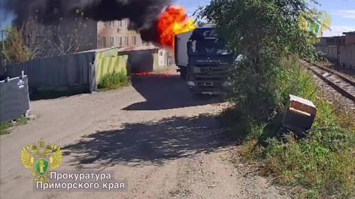 Водитель выехал на горящей фуре