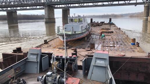 Баржа с катером на р.Обь - Навигация 2024 (18 апреля)