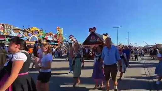 Октоберфест в Мюнхене 2023 год. Аттракционы на фестивале пива.