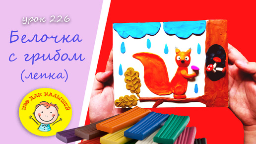 Как вылепить БЕЛОЧКУ из пластилина. УРОК 226 Тема: "белочка с грибом"- (пластилиновая картинка)