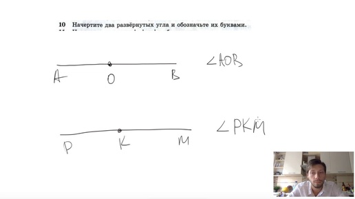 №10. Начертите два развёрнутых угла и обозначьте их буквами.