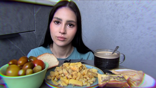 МУКБАНГ ЖАРЕНЫЙ КАРТОФЕЛЬ, СОЛЕНЬЯ, БЛИН С ВЕТЧИНОЙ И СЫРОМ, ТЕМЫ НА КОТОРЫЕ Я НЕ РАЗГОВАРИВАЮ🤐