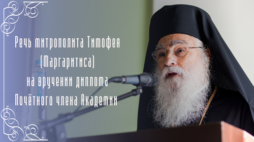 Речь митрополита Тимофея (Маргаритиса) на вручении диплома Почётного члена Академии