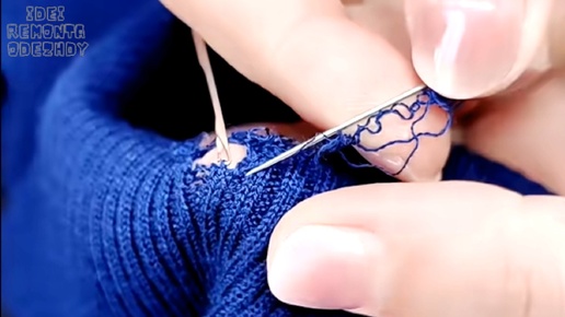 Процесс ремонта свитера с узорои резинка