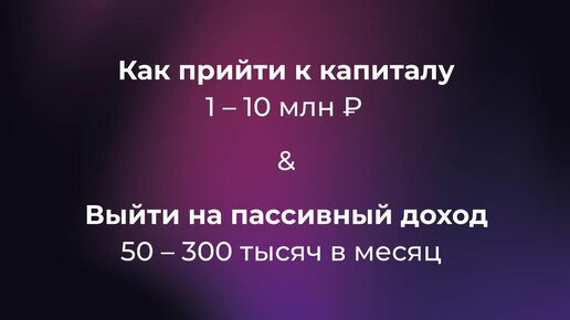 Как прийти к капиталу 1 - 10 млн и выйти на пассивный доход 50 - 300 тысяч в месяц
