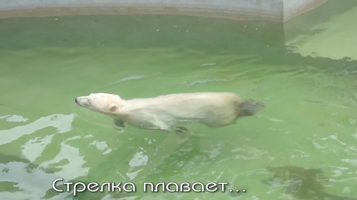 Медвежонок Стрелка поплавала в бассейне, а Белка вышла из берлоги прогуляться перед сном.