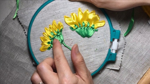 Подсолнух вышитый лентами (бутон) / Sunflower embroidered ribbons (Bud)