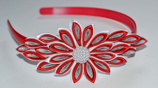 Цветок Канзаши на ободке. Мастер класс. DIY Kanzashi flower . Ribbon