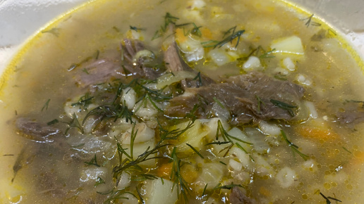 Рассольник классический с перловкой и солёными огурцами
