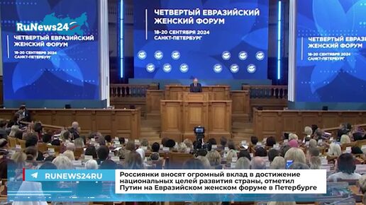 Россиянки вносят огромный вклад в достижение национальных целей развития страны, отметил Путин на Евразийском женском форуме в Петербурге