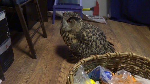 Филин Ёль изгоняет кота Мурлока из комнаты