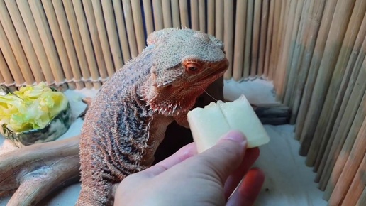 Пища драконов. Ящерка вкусно ест всякое