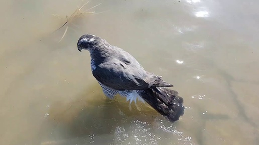 Ястреб в луже. Немытая всю зиму Сильва радуется водичке