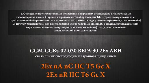 Светильник взрывозащищённый светодиодный ССМ-ССВз-02-030 Вега 30 2Ex АВН