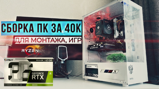 СБОРКА ПК ЗА 40К👍 | ДЛЯ МОНТАЖА, СТРИМА И ИГР | НА RTX 3060 12 GB + RYZEN 5 2600 | ( ТЕСТ-ИГР 2024Г