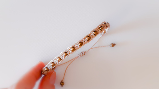 Плетеный браслет с бусинами / Как сделать браслет из ниток с бусинами / Пошаговая инструкция макраме