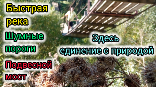 Подвесной мост над шумными перекатами быстрой реки. Восхитительные виды