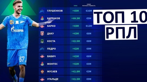 Топ-10 подорожавших игроков РПЛ по Transfermarkt!