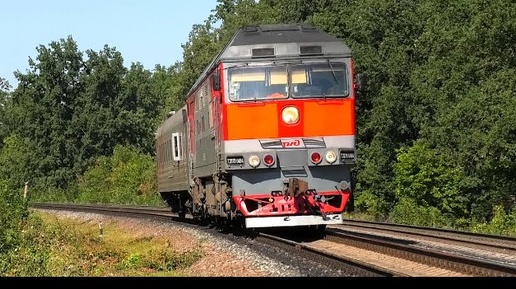 Долгосигналящий ТЭП70-0484 с вагоном-дефектоскопом и приветливой бригадой