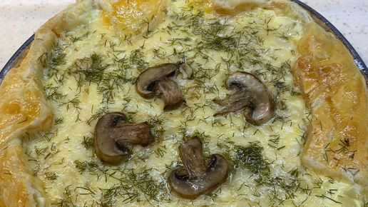 Пирог жульен с грибами и курицей в слоеным тесте