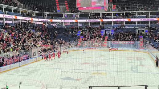 Стадион празднует первую шайбу в хоккейном матче ЦСКА — «Витязь» Виталия Абрамова. 19 сентября 2024.