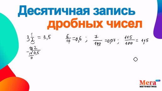 Десятичная запись | Дробные числа | Перевести в десятичную дробь | Мегашкола