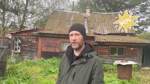 Показываю, что внутри старой бани, которая досталась нам вместе с участком в деревне